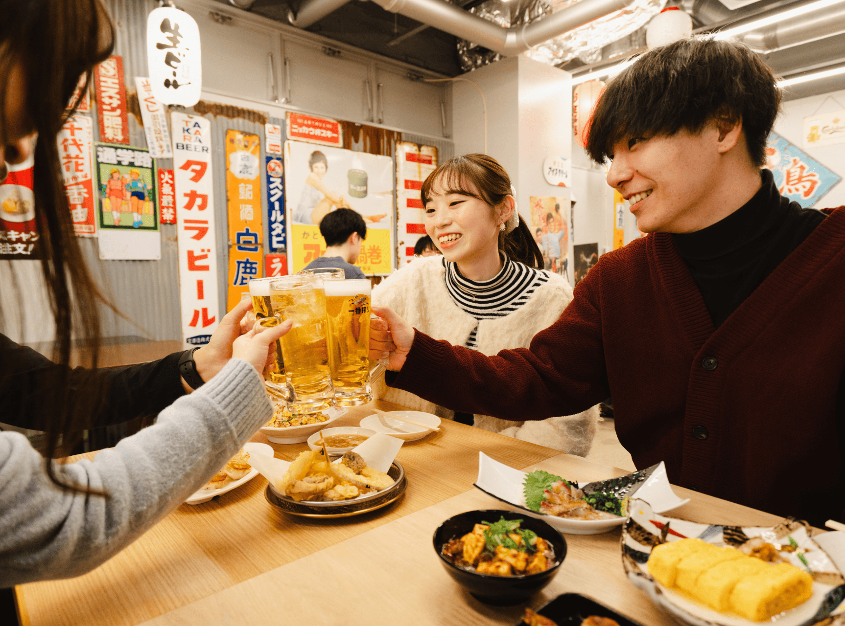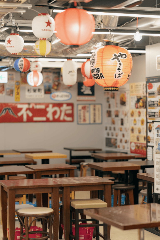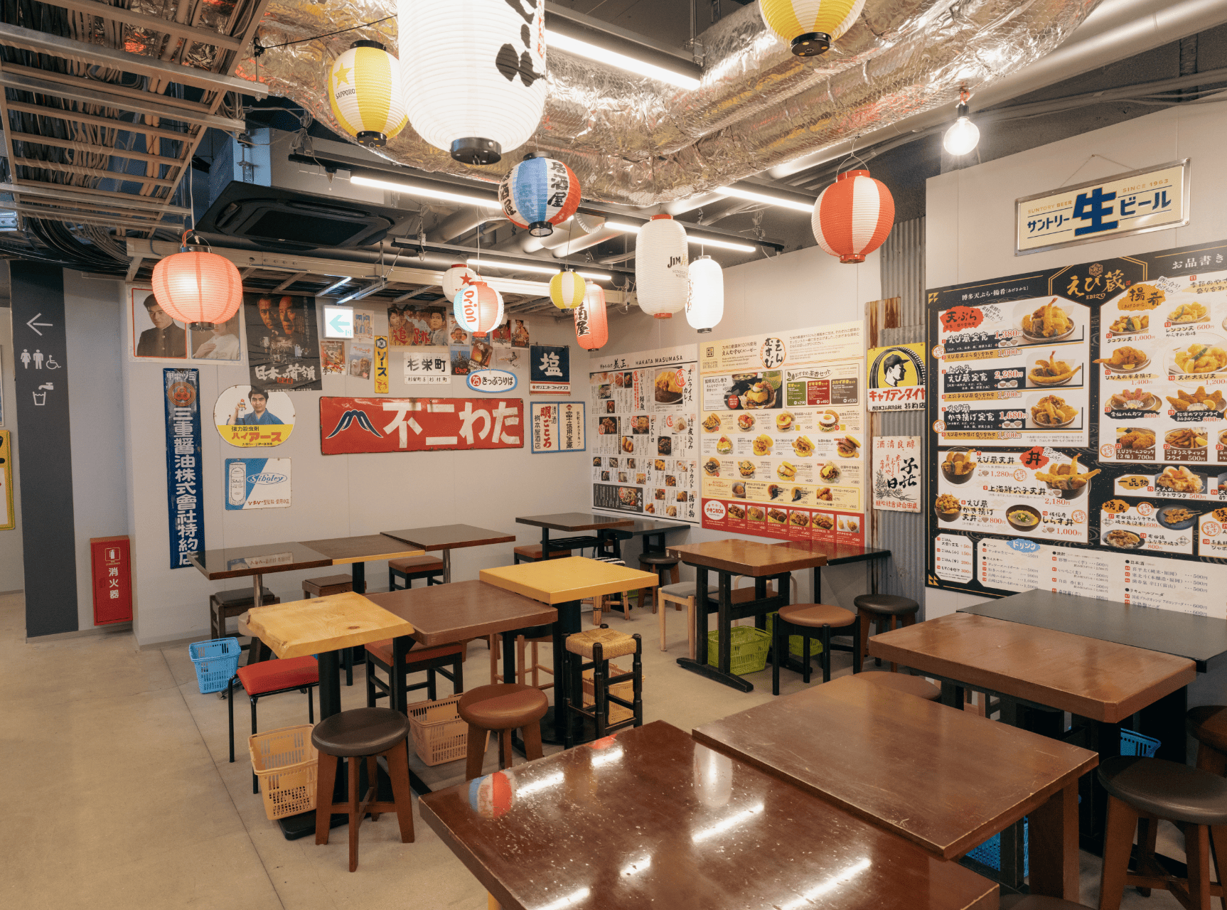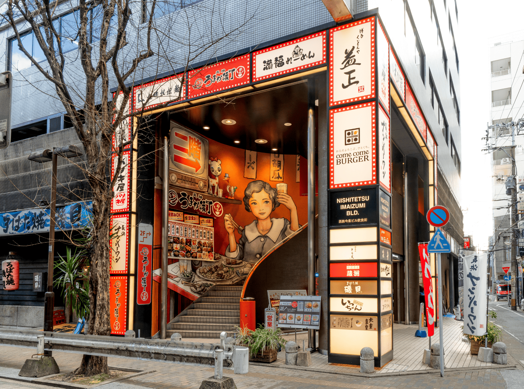 「天神うまか横丁」では、昔ながらのまちの雰囲気を大切にし、昭和レトロなノスタルジックなデザインでお迎えします。193席の広々とした空間は、ランチやディナーなど、様々なシーンでご利用いただけます。天神うまか横丁は、博多弁の「うまか(=美味しい)」を取り入れた親しみやすい名前で、福岡の美味しい食を複数店舗で楽しめる空間です。友人や家族と一緒に、心温まるひとときをお過ごしください。皆様のご来店を心よりお待ちしています!