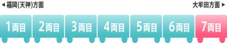 福岡(天神)駅に平日朝7時31分から8時39分に到着する7両編成の急行・特急の最後部1両(大牟田側)は「女性専用車両」です。