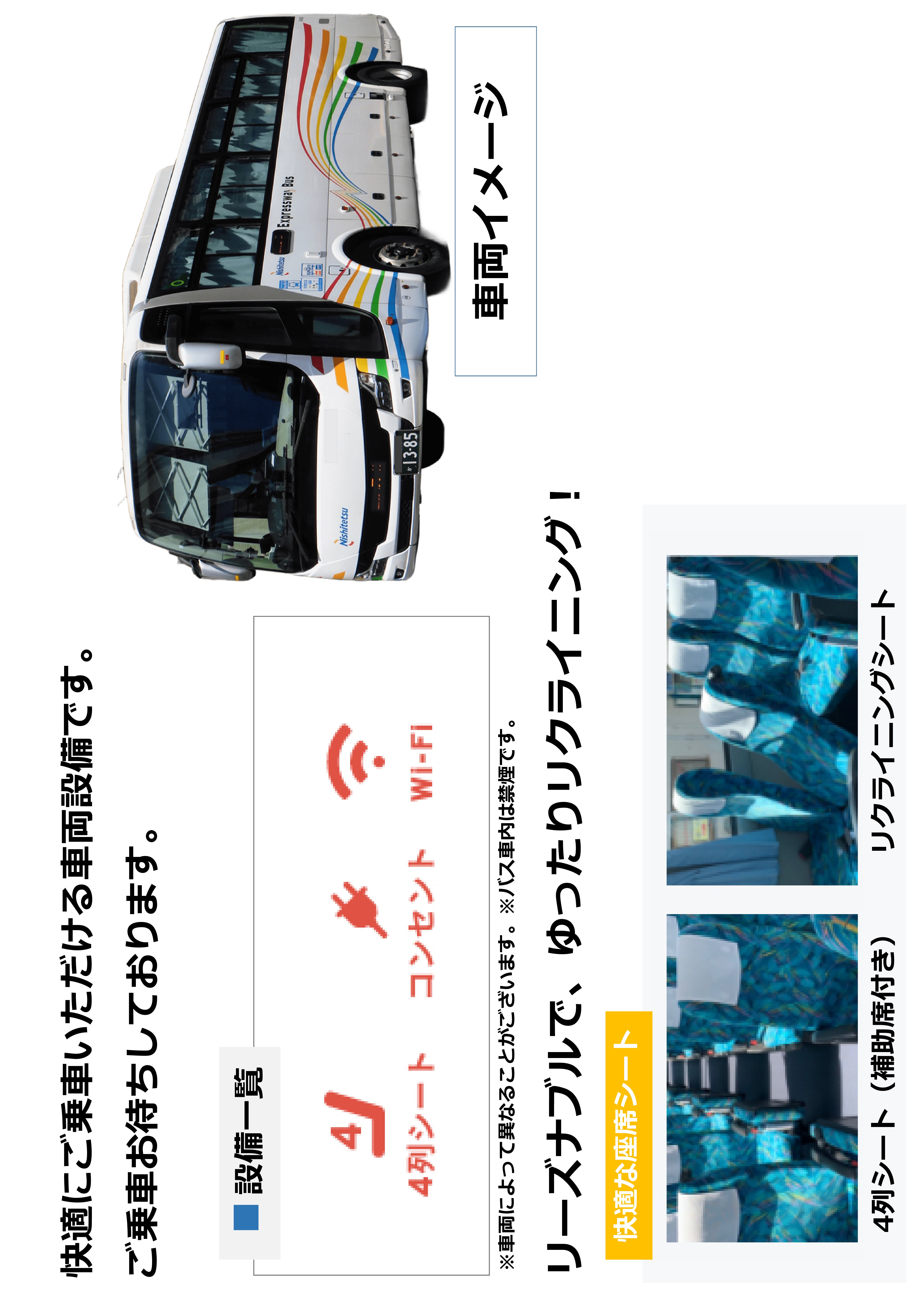 ※満席の場合はご乗車いただけないことがございます - 車内で二千円・五千円・一万円札の両替はお受けできないことがございますので、あらかじめ千円札・小銭のご用意をお願いします。