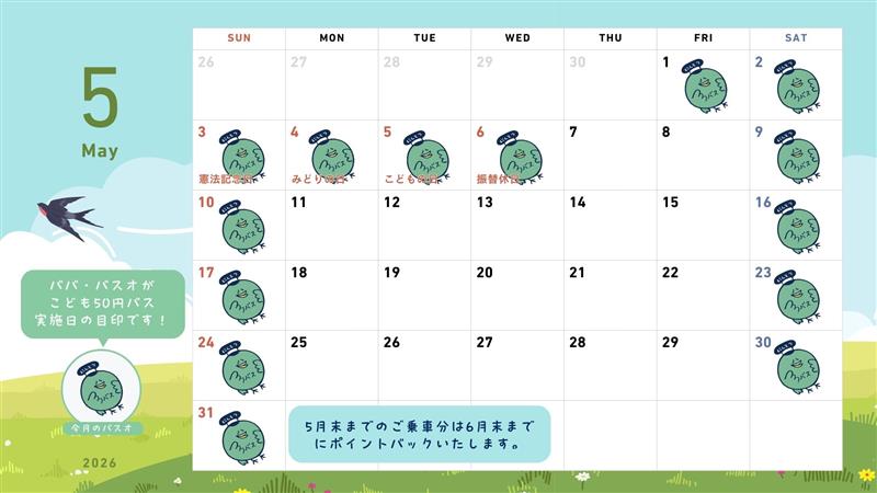 にしてつバスでは小学生以下を対象としたバス運賃割引キャンペーン「こども50円バス」を実施しております。