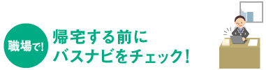 バスの到着予想時刻や現在位置がリアルタイムでわかる(※)ので朝の貴重な時間を有効活用できます。乗りたいバスが毎日同じなら「バス接近案内メール」サービスが便利。指定した条件にしたがってバスの接近をメールでお知らせいたします。