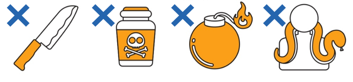他のお客さまに危険を及ぼす可能がございますので、お持ち込みはご遠慮ください。