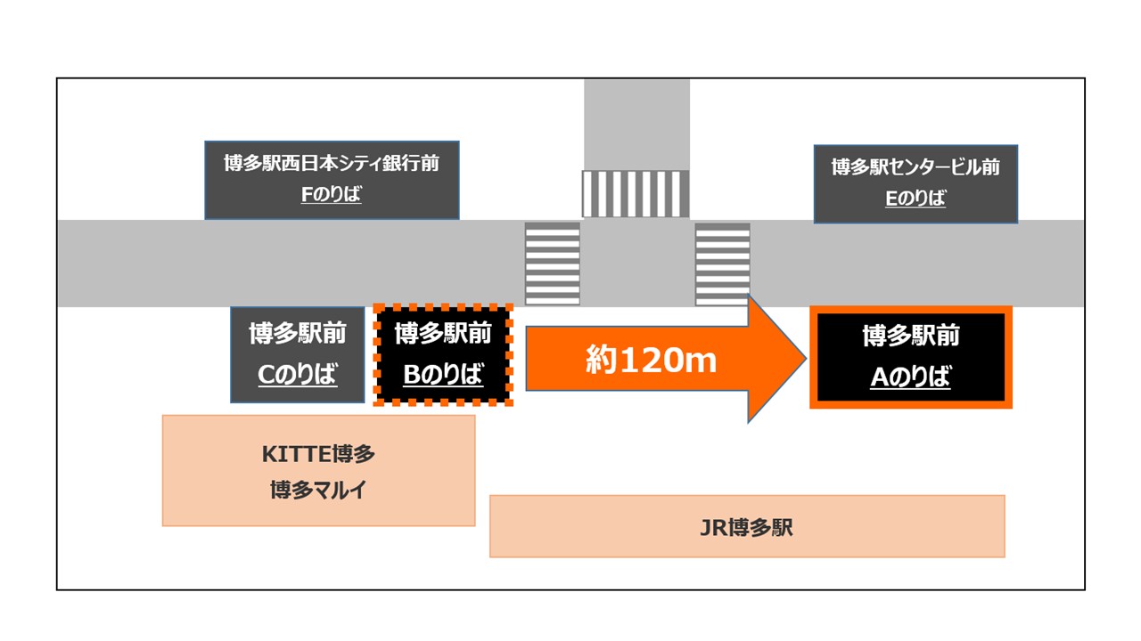 『博多駅前B』のりば⇒『博多駅前A』のりば