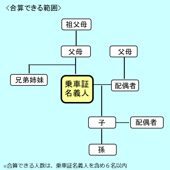 概ね2親等※以内の家族が所有する株式数を合算して、優待乗車証を請求することができる制度です。