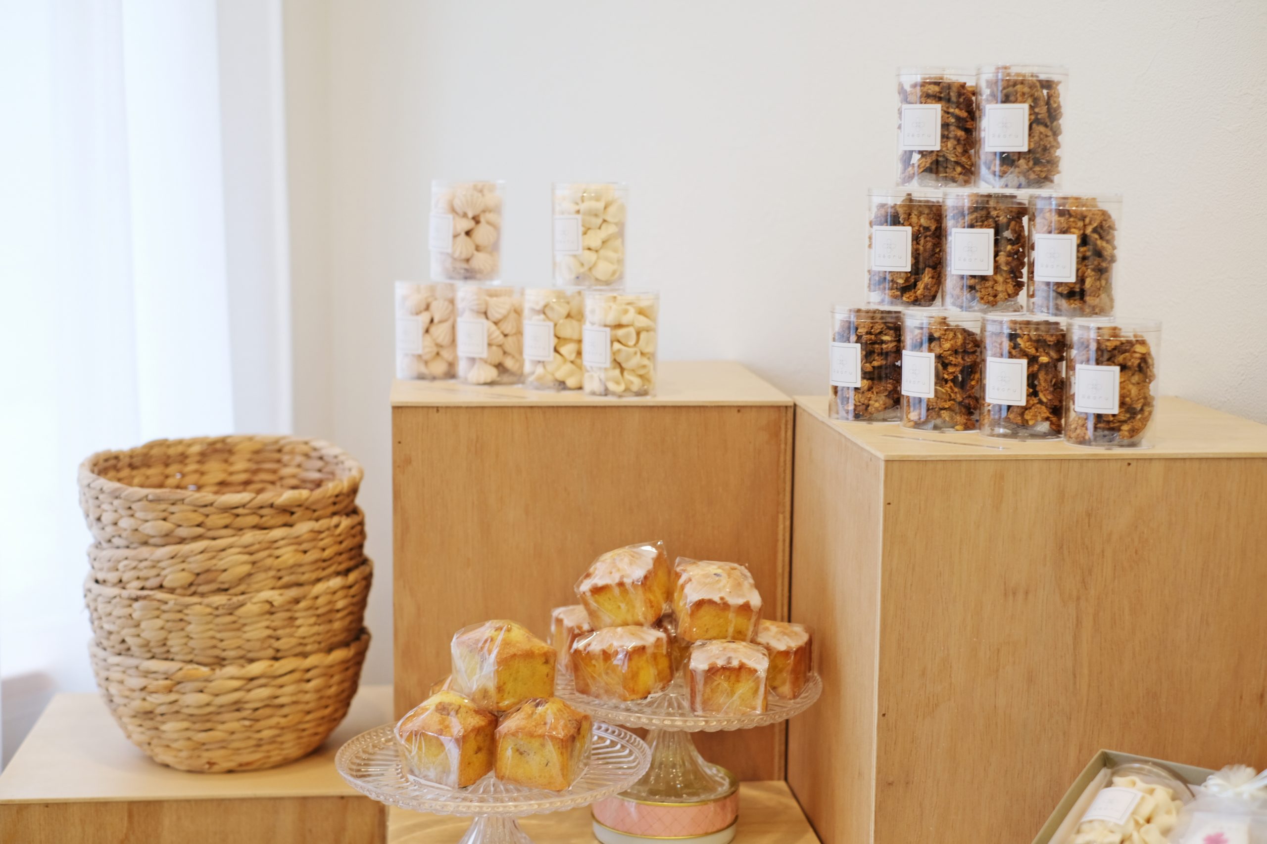 「スクエアケーキ」や筒状のパッケージに入ったクッキーなど、お花クッキー以外の商品も揃っています。小分けのものもあるので、自宅でのおやつタイムにもおすすめです。