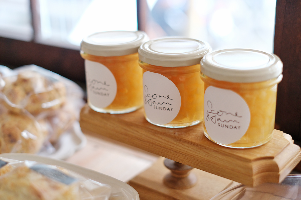 スコーンと一緒に楽しみたい手づくりジャムは、フルーツのおいしさをそのまま凝縮しながらさらりとしたテクスチャー。季節によってフルーツが替わり、10月は洋ナシなどが並ぶ予定です。