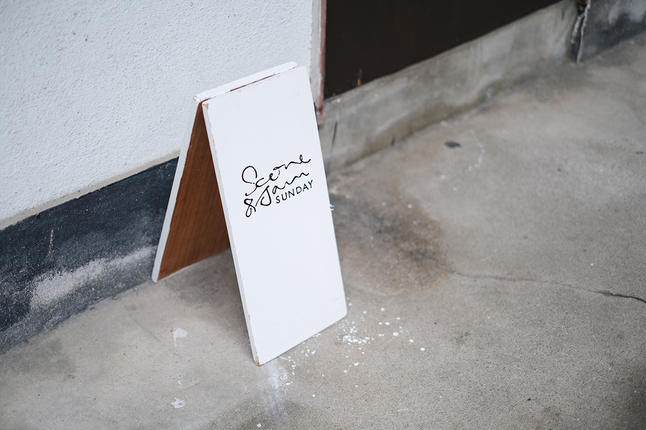 今回ご紹介するスコーンと手づくりジャムのお店「SUNDAY(サンデー)」は1階の奥にあります。オープン時に置かれる小さな看板が目印です。