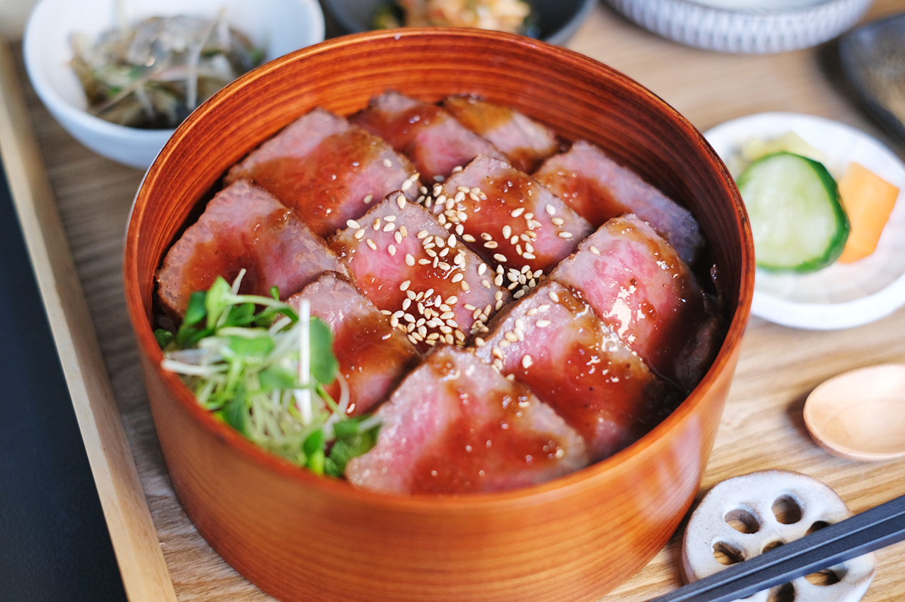 看板メニューは「トリュフ香るステーキなひつまぶし」(2,980円)。空閑さんの洋食と和食の経験が存分に活かされた定食です。