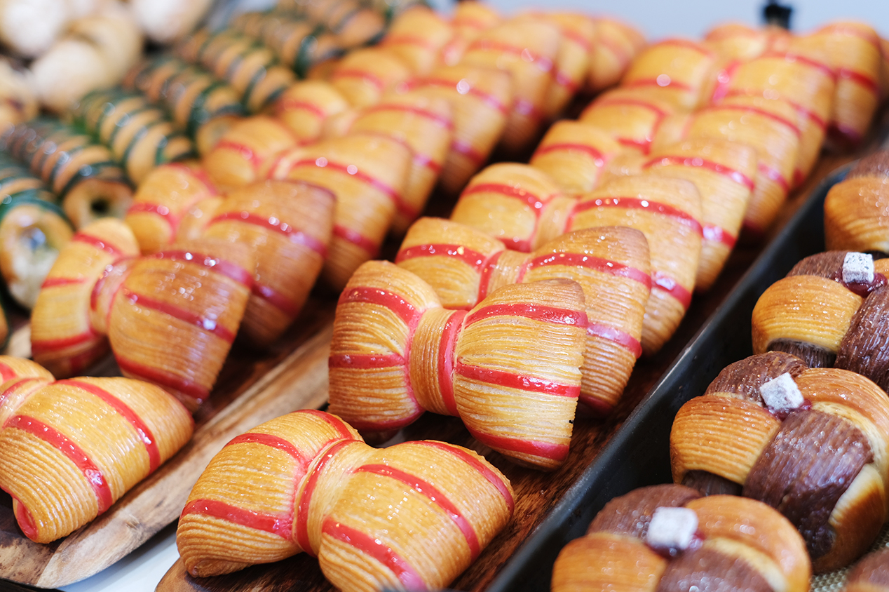 クロワッサン生地を使用したパンの種類は豊富で、なかでも可愛らしいリボンのクロワッサンは主役級の存在感。リボンの形のクロワッサンはちょうど堀さんが帰国することにパリで流行り始めていたもので、日本でお店を開くときには作りたいと思っていたそうです。