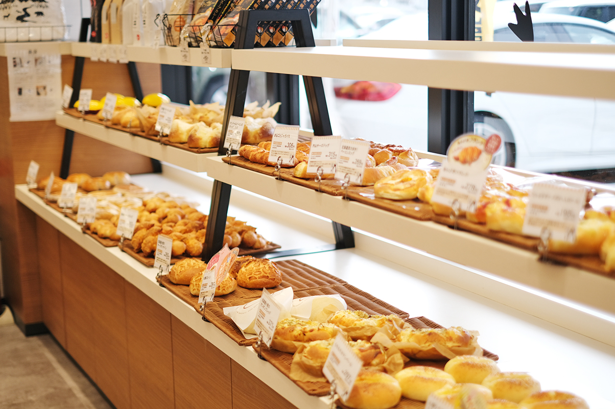 明るい店内には店内で焼き上げる約80種類のパンが並んでいます。コンセプトの通り、北海道産の小麦粉をはじめ、乳製品など北海道産のものをできる限り使ってパンがつくられています。
