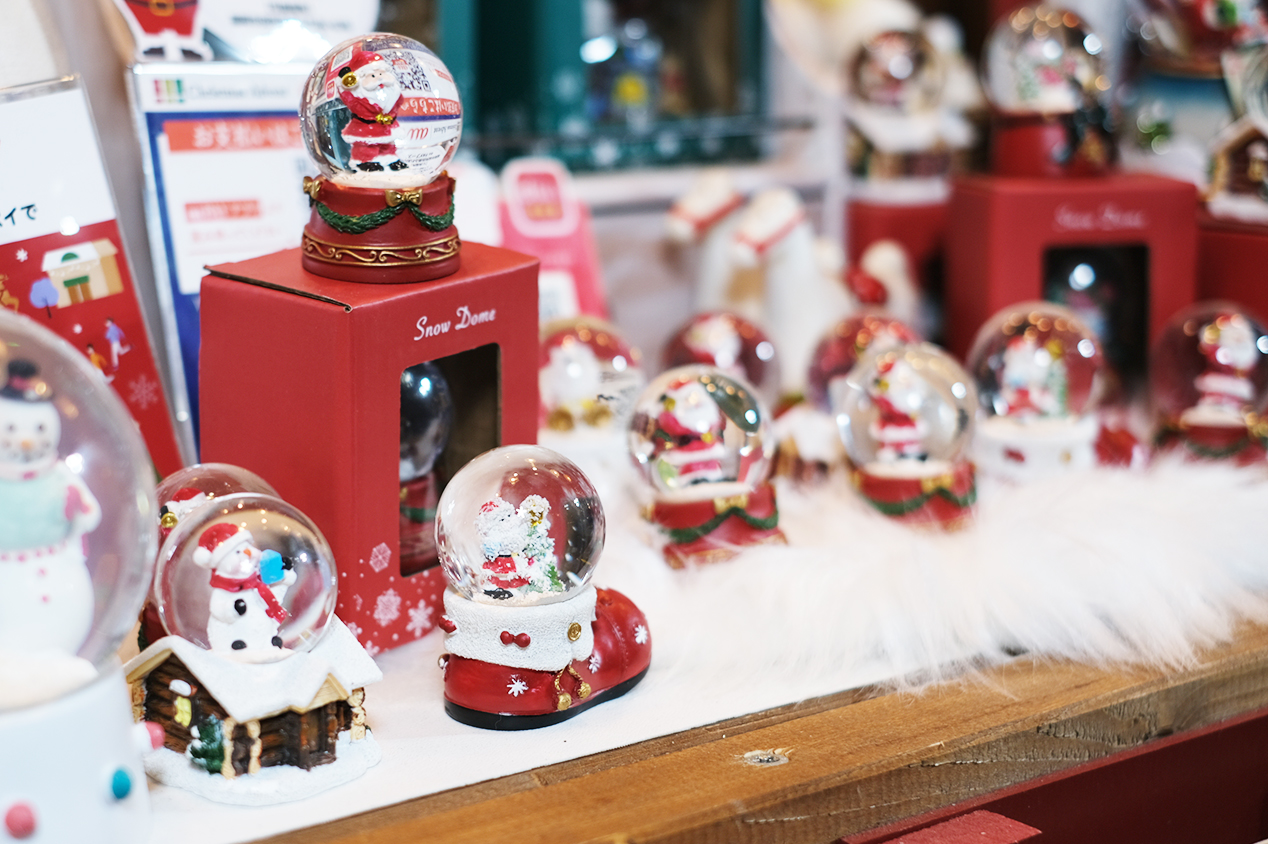 ドイツ生まれのクリスマスの装飾「シュヴィップボーゲン」のアーチをくぐった先に広がる会場では、たくさんのサンタクロースやクリスマスツリーがお出迎え。広場を囲むように連なる木製の小屋・ヒュッテで販売しているホットワインやドイツビール、クリスマスグルメを片手にクリスマスマーケットの雰囲気を満喫しましょう。