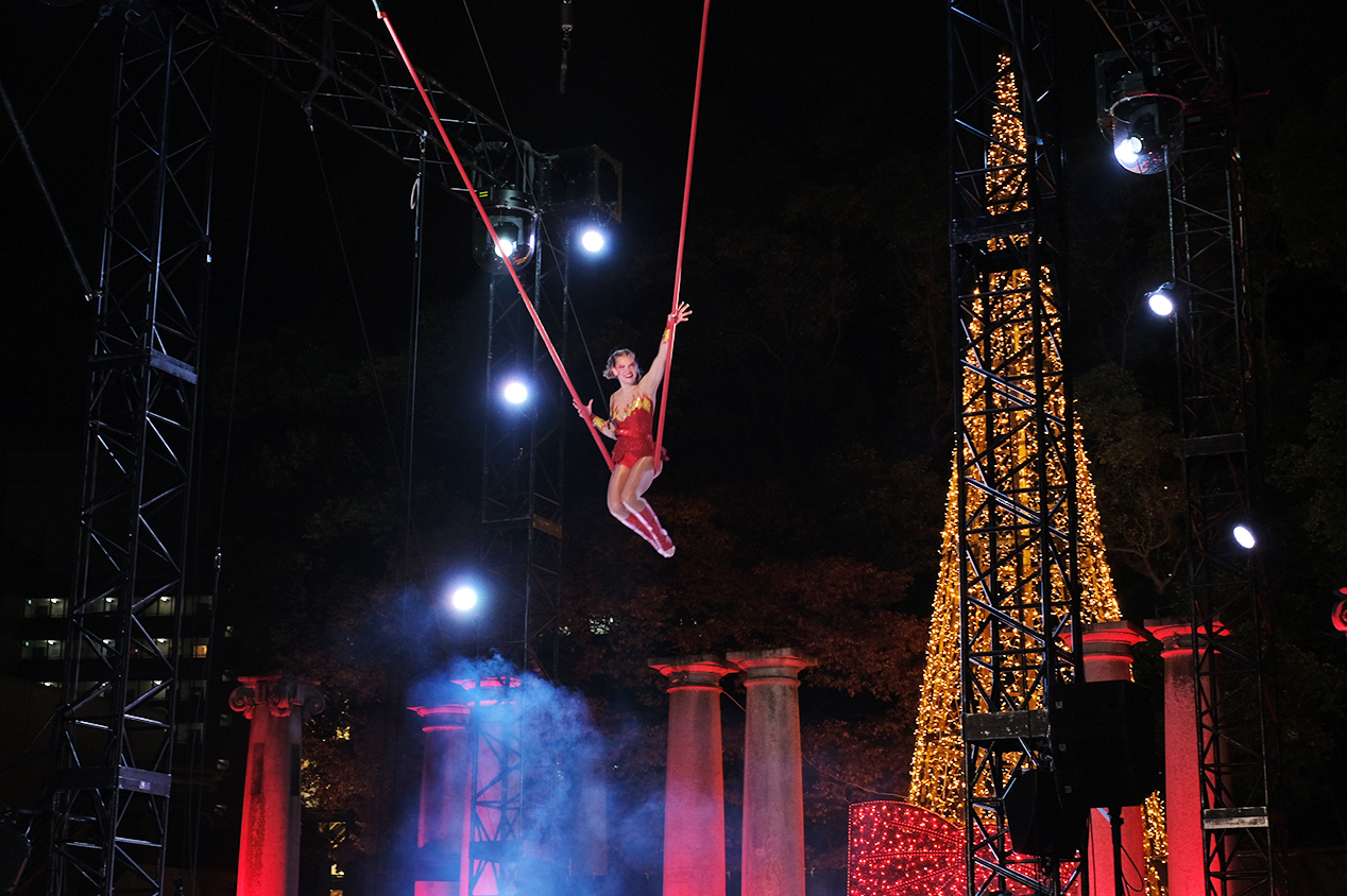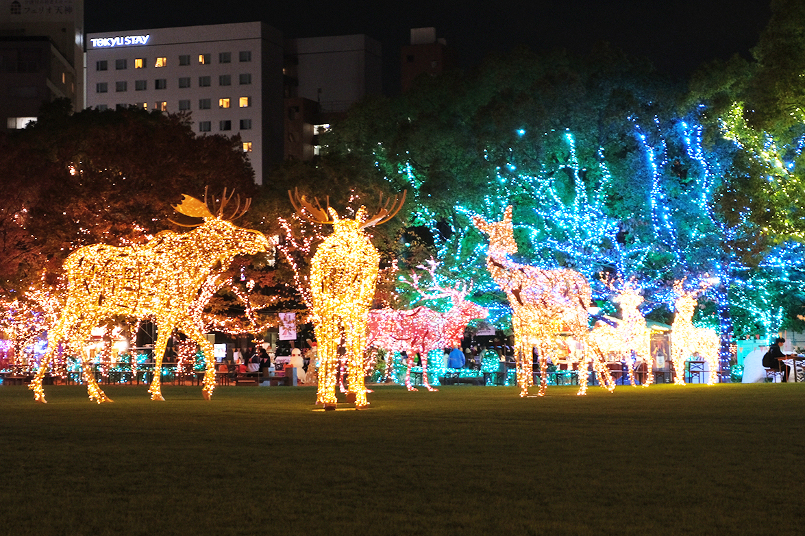 高さ12mのシンボルツリーがそびえ、動物をかたどった光のオブジェが輝く「天神中央公園」には、今年も見どころがたくさん。広い会場にはサンタクロースのオブジェや光る車やバイクのオブジェ、サンタ列車、くるみ割り人形などのフォトスポットが数多く点在するほか、立ち並ぶヒュッテではクリスマスグルメやスノードームなどの雑貨を販売。また、12/18(木)まで(月・火曜は休み)無料で観覧できる「クリスマスサーカス Reverie」が開催されます。