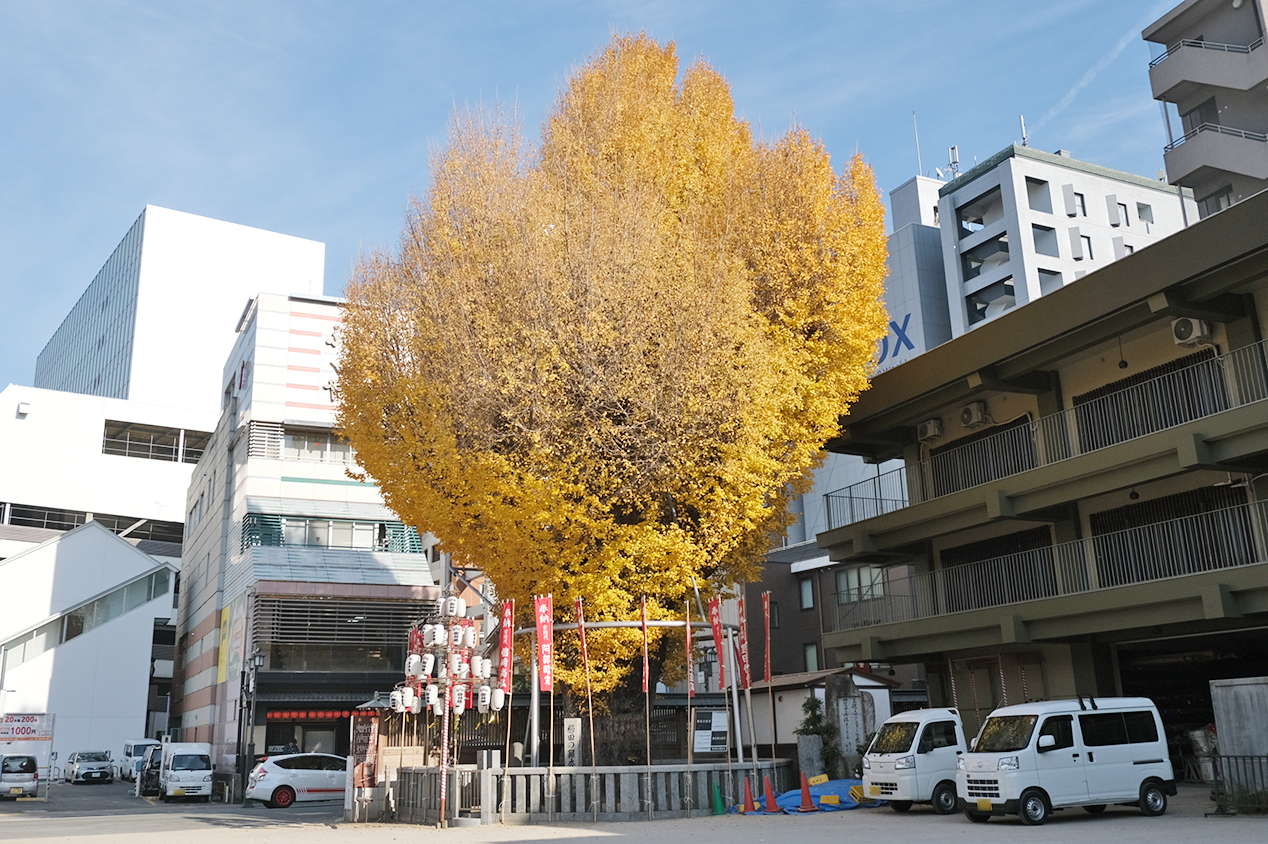 参拝と併せて楽しみたい見どころのなかから代表的なものをご紹介。楼門のそばは樹齢1000年を超える御神木「櫛田の銀杏(ぎなん)」があり、取材時はちょうど美しく色づいた様子を楽しむことができました。
