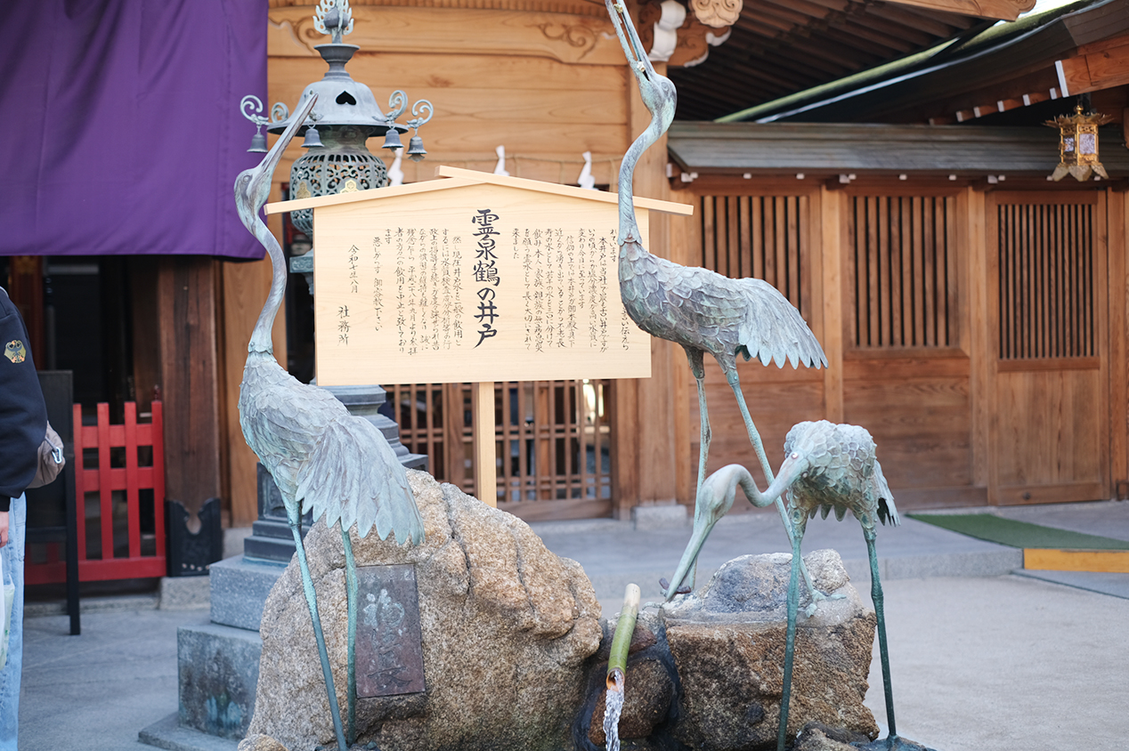 御神殿の下から井戸が枯れることなく湧き出ていることから、不老長寿の御利益があるといわれる「霊泉 鶴の井戸」も有名です。