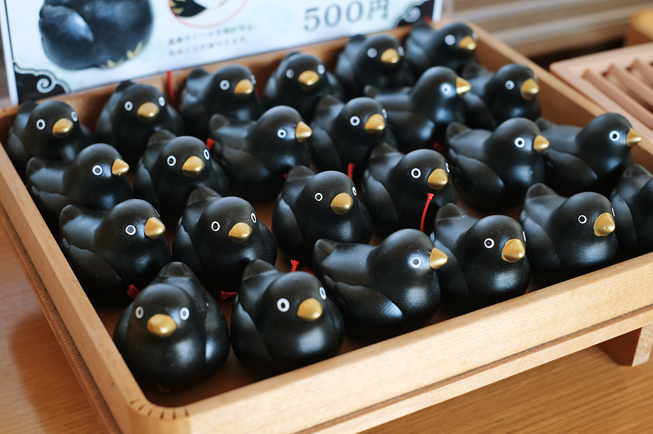 陶器の置物の中におみくじが入った「八咫烏みくじ」(500円)は、持ち帰って参拝の思い出に飾っておくのもいいですね。