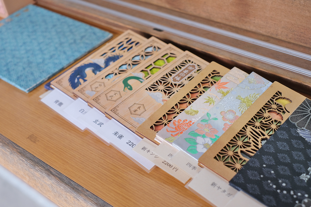 御朱印帳も木製のものや見開き用など、さまざまなものがあります。