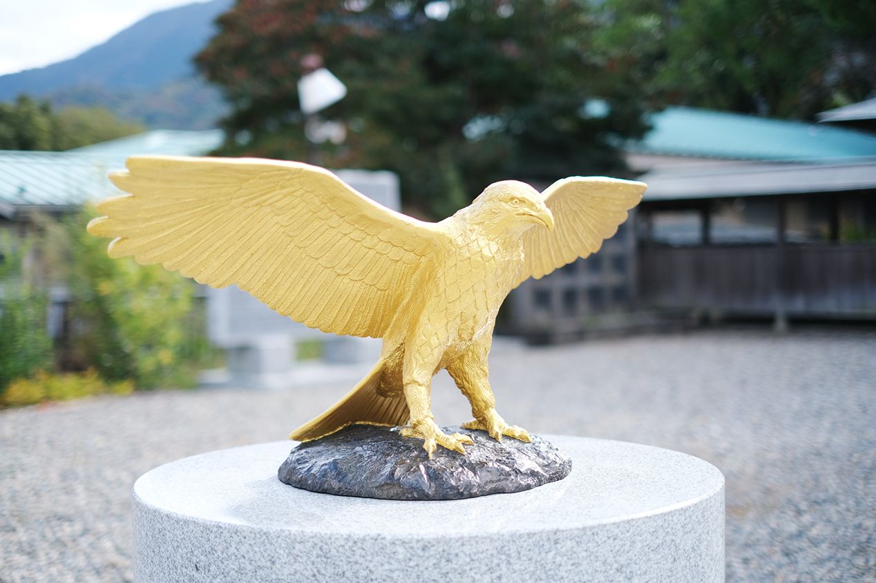 神武天皇ゆかりの神社のため、境内には神使・八咫烏(やたがらす)と金鵄(きんし ※金のとび)の像が奉納されています。そっと撫でて、人々をいい方向に導く八咫烏や、勝利をもたらす金鵄の御神徳を授かってみてはいかがでしょうか。