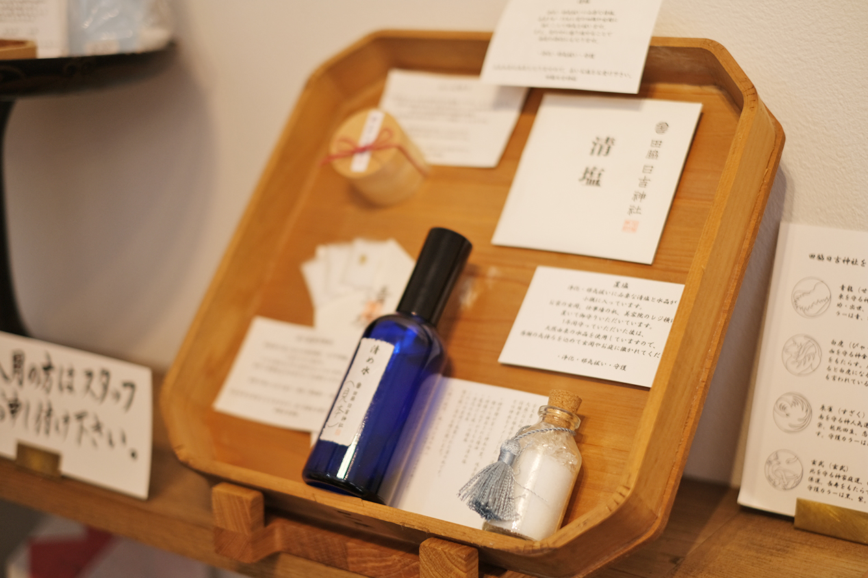 ガラスの瓶に入った清め塩や、清め塩と吉守りが入った「わっぱ守り」(500円)など、シンプルで洗練された授与品が多いのも特徴です。