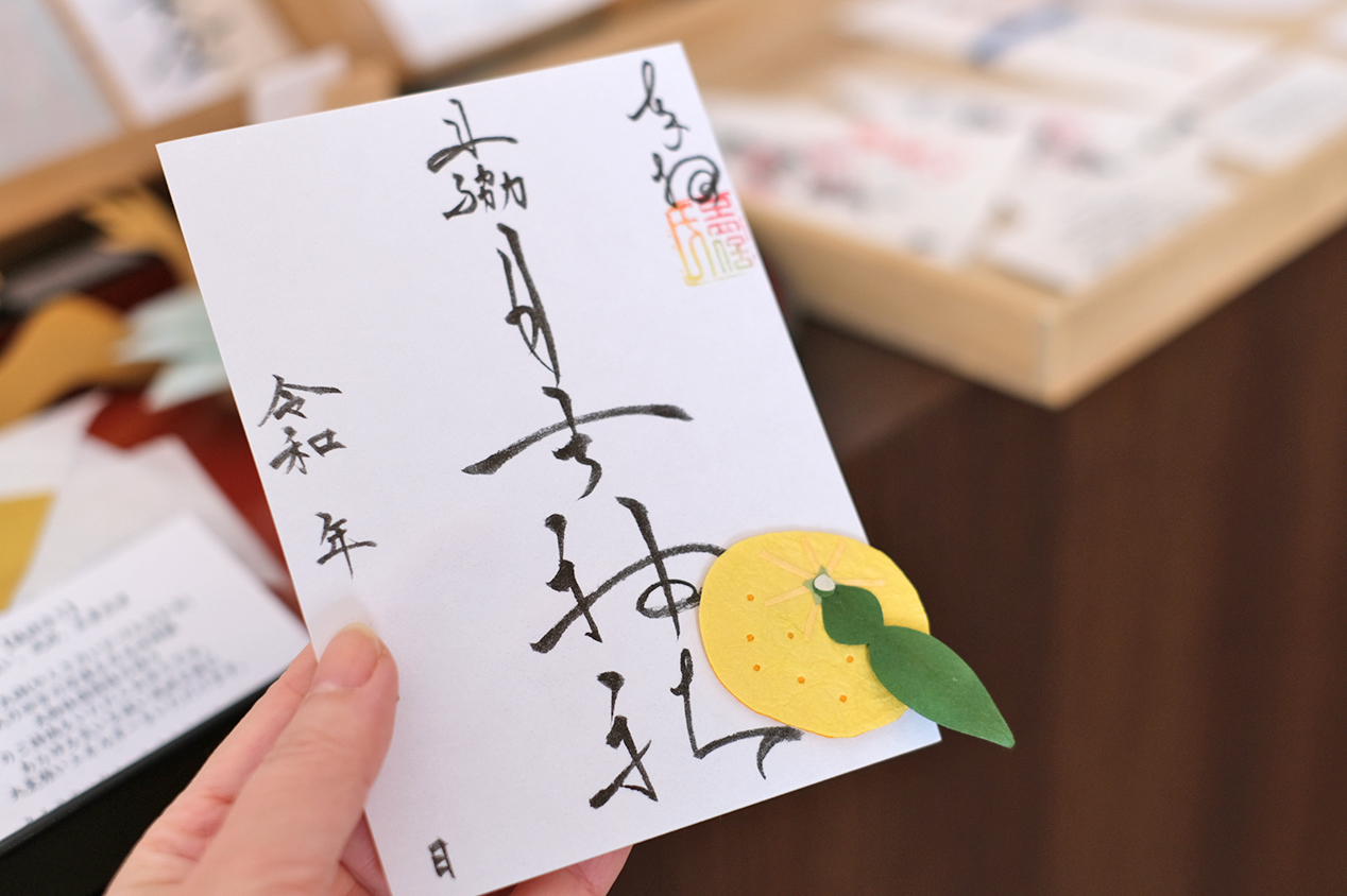 季節のモチーフを貼り、お香の香りを付けた御朱印も温かみがあります。