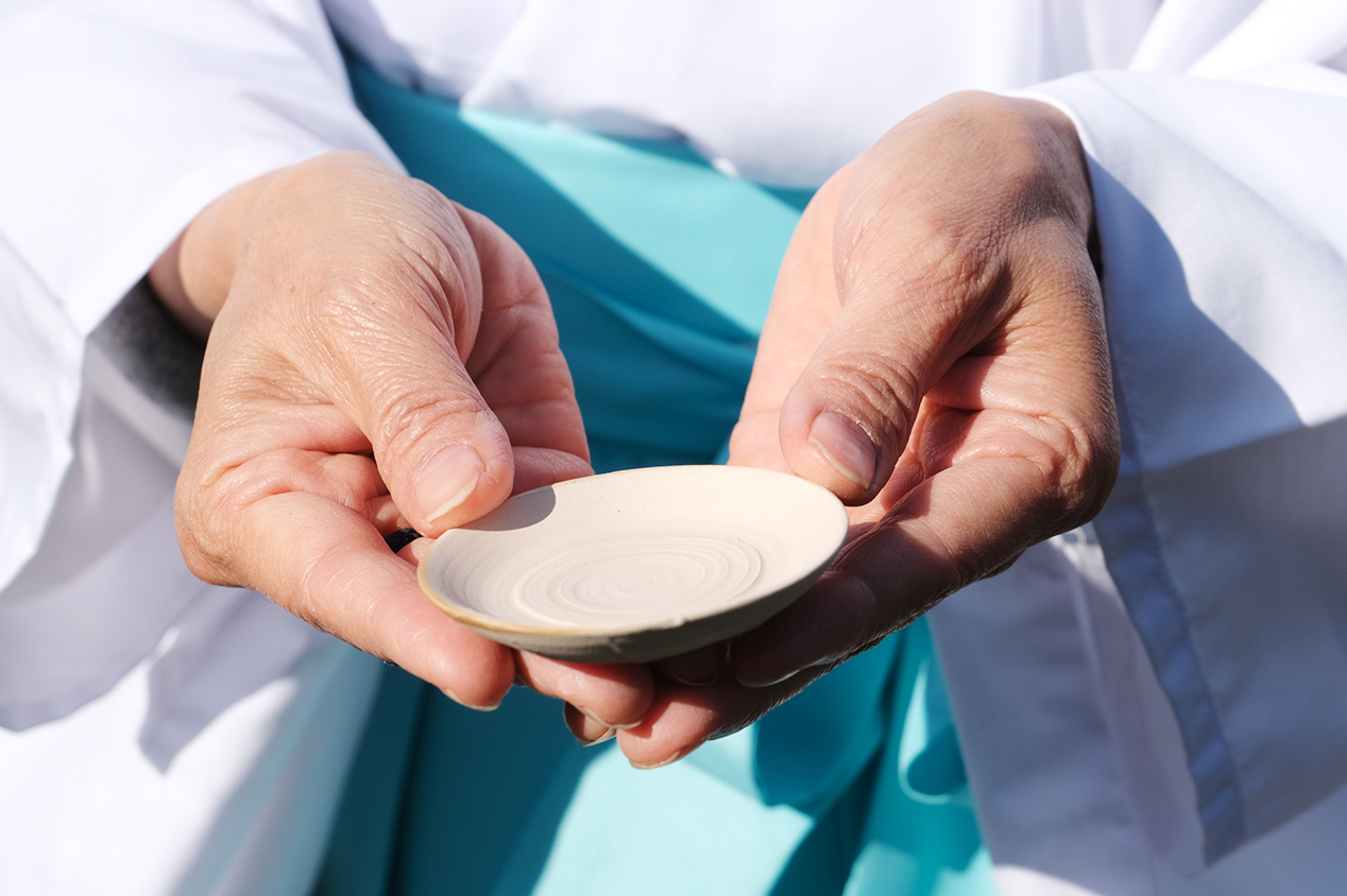 「追儺祭」の間は「厄除厄皿」(500円)も用意されています。社務所で受け取った厄皿(かわらけ)を持って茅の輪をくぐり、息を吹きかけた厄皿を厄板に向けて投げて割り、厄を落とすというもの。この期間だけの特別な体験です。