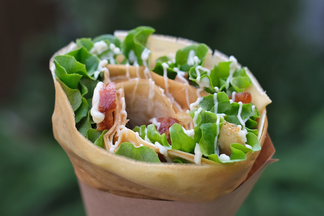 クレープはスイーツ系を中心に、食事系、季節限定と約15種類がラインナップ。旬のフルーツなどを使った季節限定は毎月内容が替わります。クレープの巻紙のデザインもおしゃれなので写真を撮りたくなります。