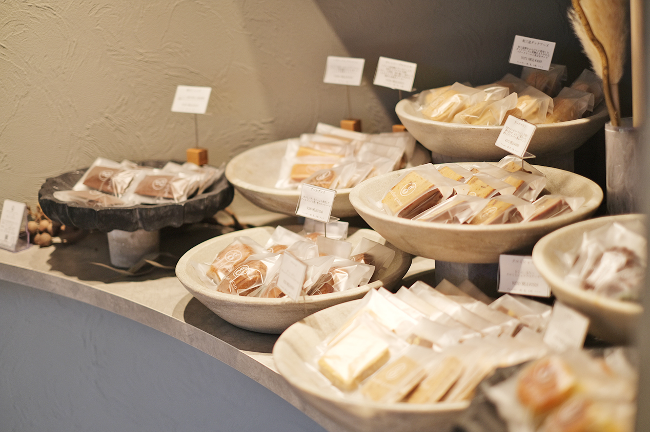 松尾さんの出身地・筑紫野市に「atelier g.(アトリエグラム)」がオープンした当初は、地元の人に親しみを感じてもらいたいという想いから、ベーシックなケーキが中心でチョコレートは少なめでした。しかし、徐々に松尾さんが作るチョコレートや独創的なケーキが認知されるようになり、2022年に現在の場所に移転すると同時にチョコレートを中心としたラインナップに変更し、店名も「atelier g.cacao(アトリエグラム カカオ)」と改めました。