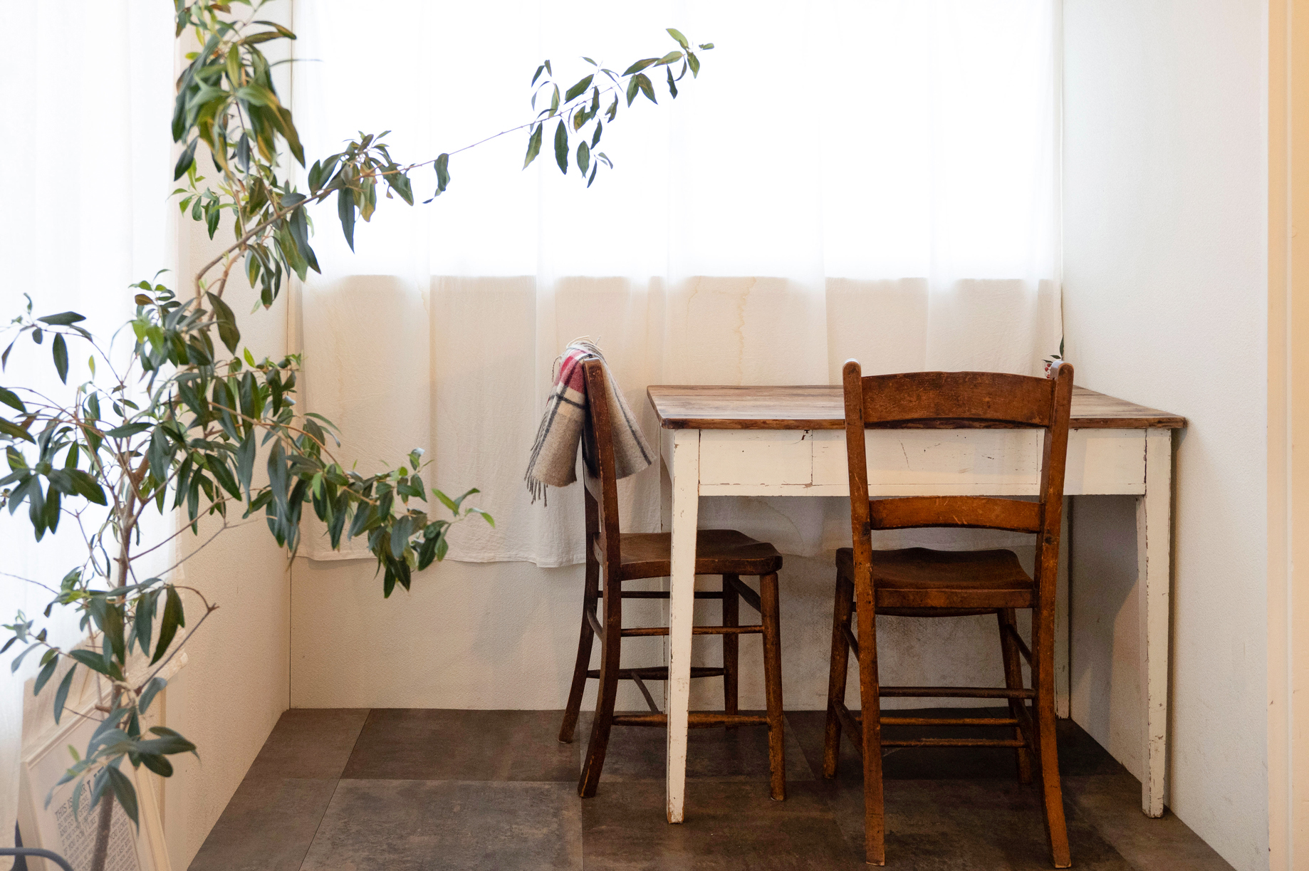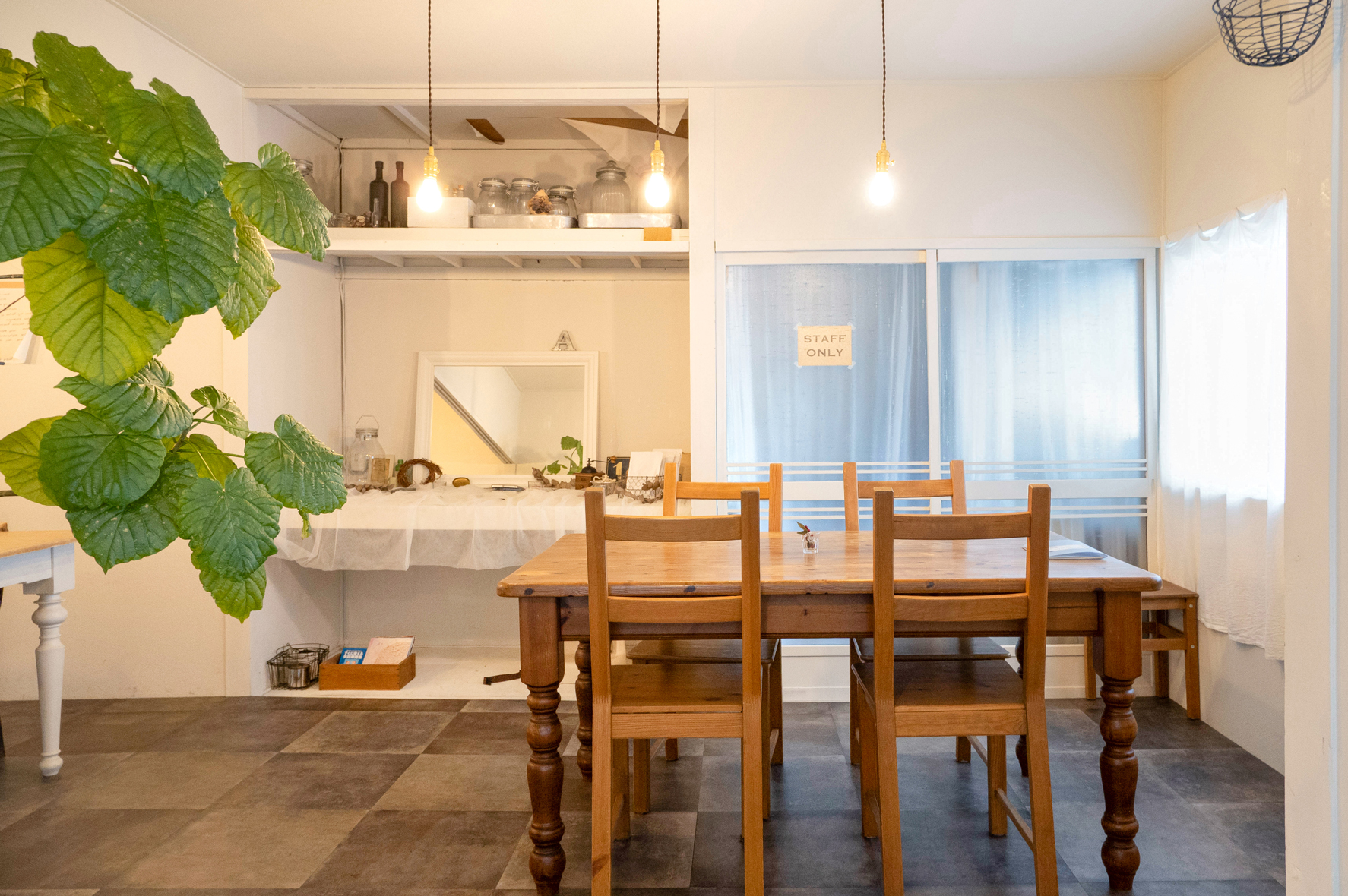 店内へ入り、メニューを注文したら2階席へ。ヨーロッパのヴィンテージ家具や小物がさりげなく飾られた店内は温もりのある雰囲気。1人や2人でくつろげるコーナー席から広々としたテーブル席まであり、居心地の良い空間が広がっています。
