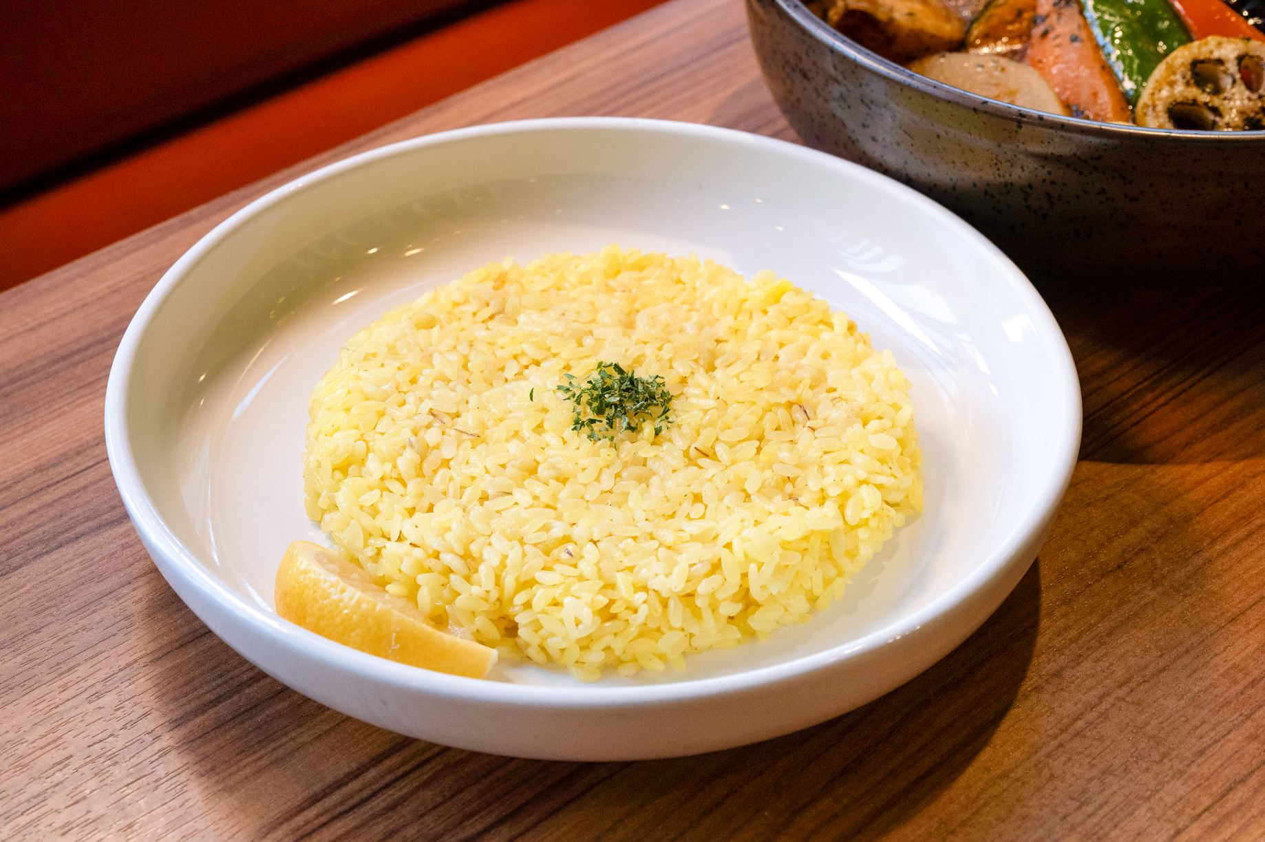 やや硬めに炊き上げたターメリックライスとの相性も抜群。レモンを搾るのもおすすめで、ひと口、またひと口とスプーンが止まらなくなるおいしさです。食べ終わる頃にはじんわりと汗ばむほどにからだも温まりますよ。