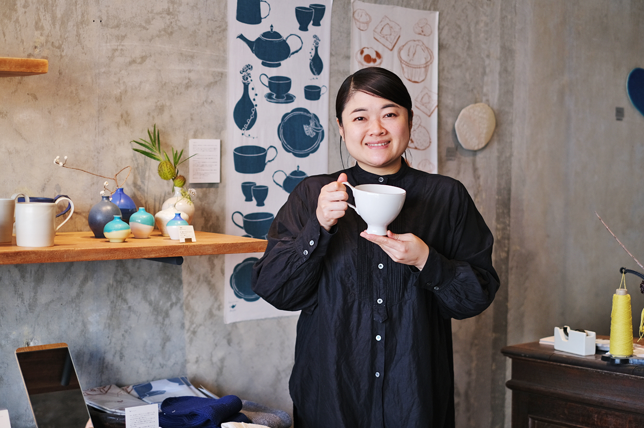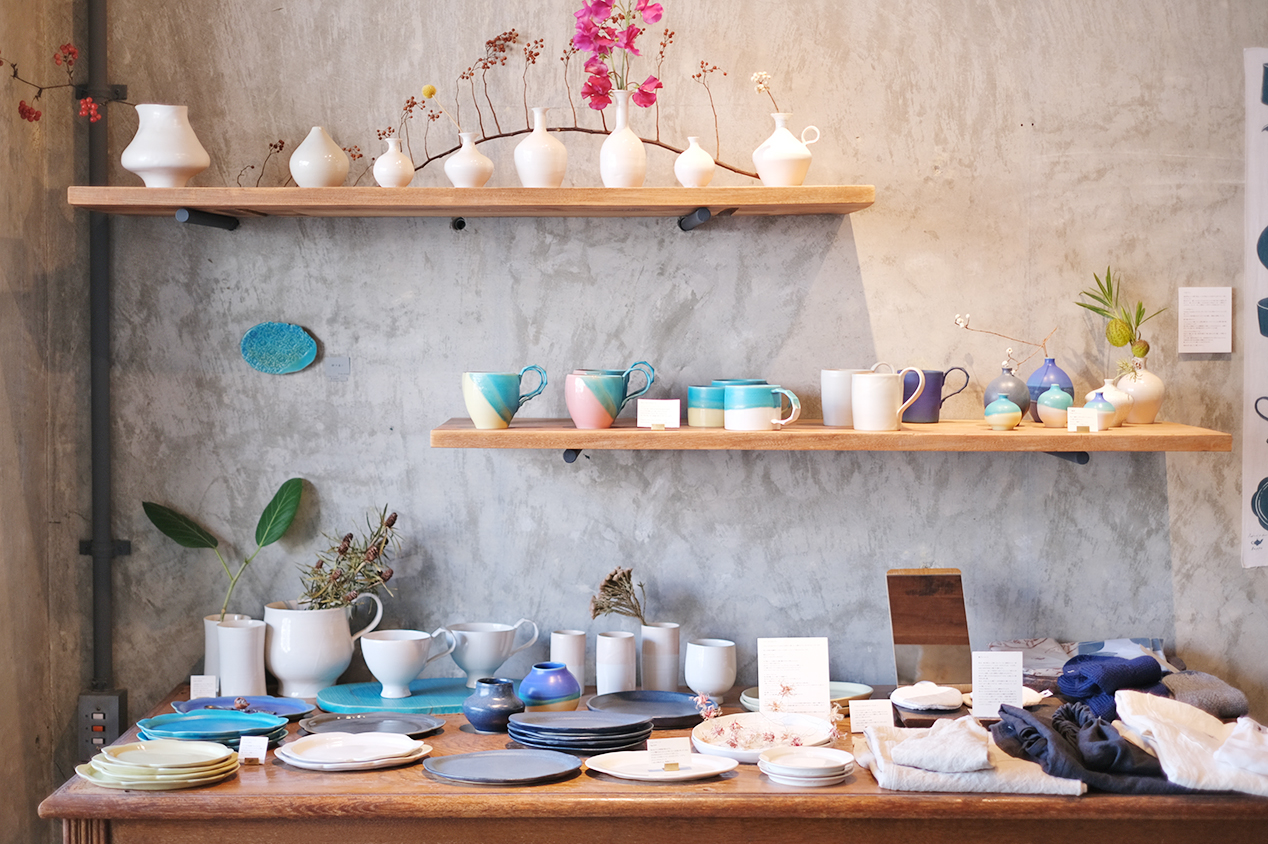 こちらは大分県を拠点とする陶芸家・坂本和歌子さんのお店。ご自身のブランド「Wakako Ceramics」の器づくりはもちろん、ホテルのロビーなどに展示されるアート作品の制作、建築家の夫・光浦高史さんと共に「HAJIMARI BEPPU」の宿主、ご自身の出身校である「大分県立芸術文化短期大学」の講師など、多方面で活躍する別府のアートシーンの中心的な存在です。