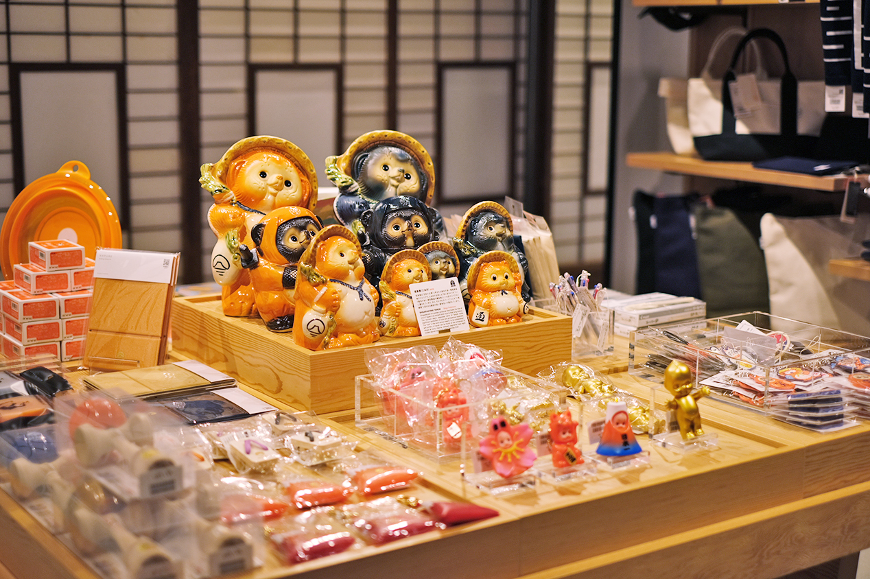 アイテムは「BEAMS JAPAN」オリジナルに加え、コラボレーション商品やセレクトアイテムなどさまざま。入口すぐの棚には小石原焼や小倉織、八女提灯など福岡の銘品が揃っています。