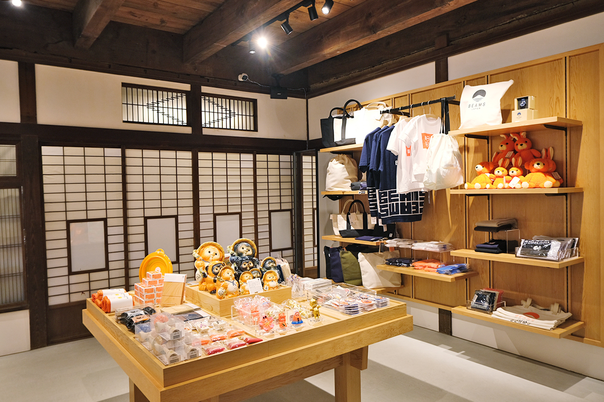 築90年以上の建物を改装した店内は、古い梁や柱を残した趣ある造り。そこに「BEAMS JAPAN」がキュレーションした、日本製のモダンなアイテムが並んでいます。