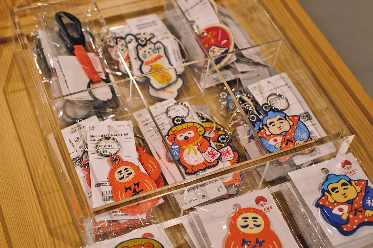 久留米絣の「オカモト商店」の巾着やポーチ、福岡の伝統工芸品・福岡花ござのメーカー「イケヒコ・コーポレーション」のい草商品、シューズメーカー「MOONSTAR」の端材を活用した「ラバーだるま」など、どれも「BEAMS JAPAN」らしくおしゃれでありながら、伝統や技術を感じられるものとなっています。特に「ラバーだるま」は入荷すると数日で完売するほどの人気ぶり(現在入荷待ち)。入荷情報はInstagramをチェックしてみてくださいね。※写真の「ラバーだるま」は通常商品より大きいサンプル品です。