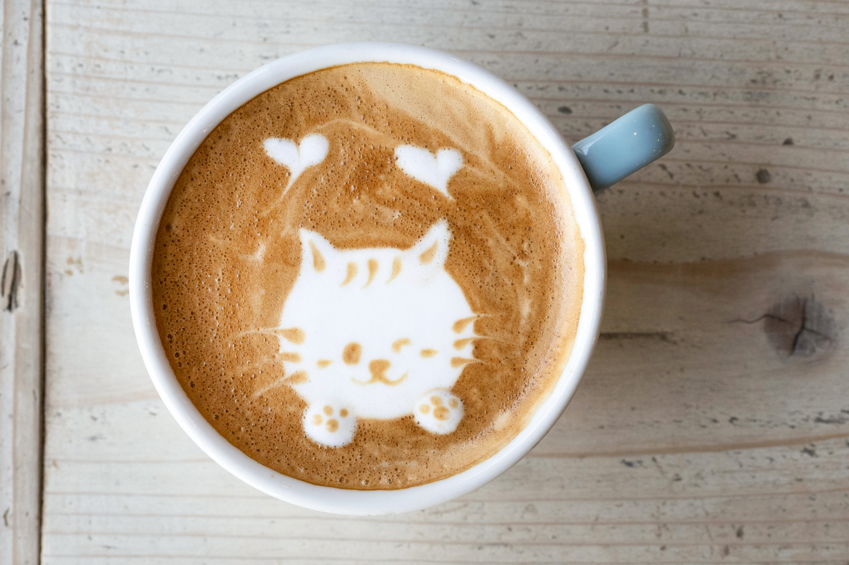 パンケーキと一緒に注文したいドリンクメニューも充実。1番人気は「カフェラテ」(500円)で、かわいらしいラテアートにも癒されます。
