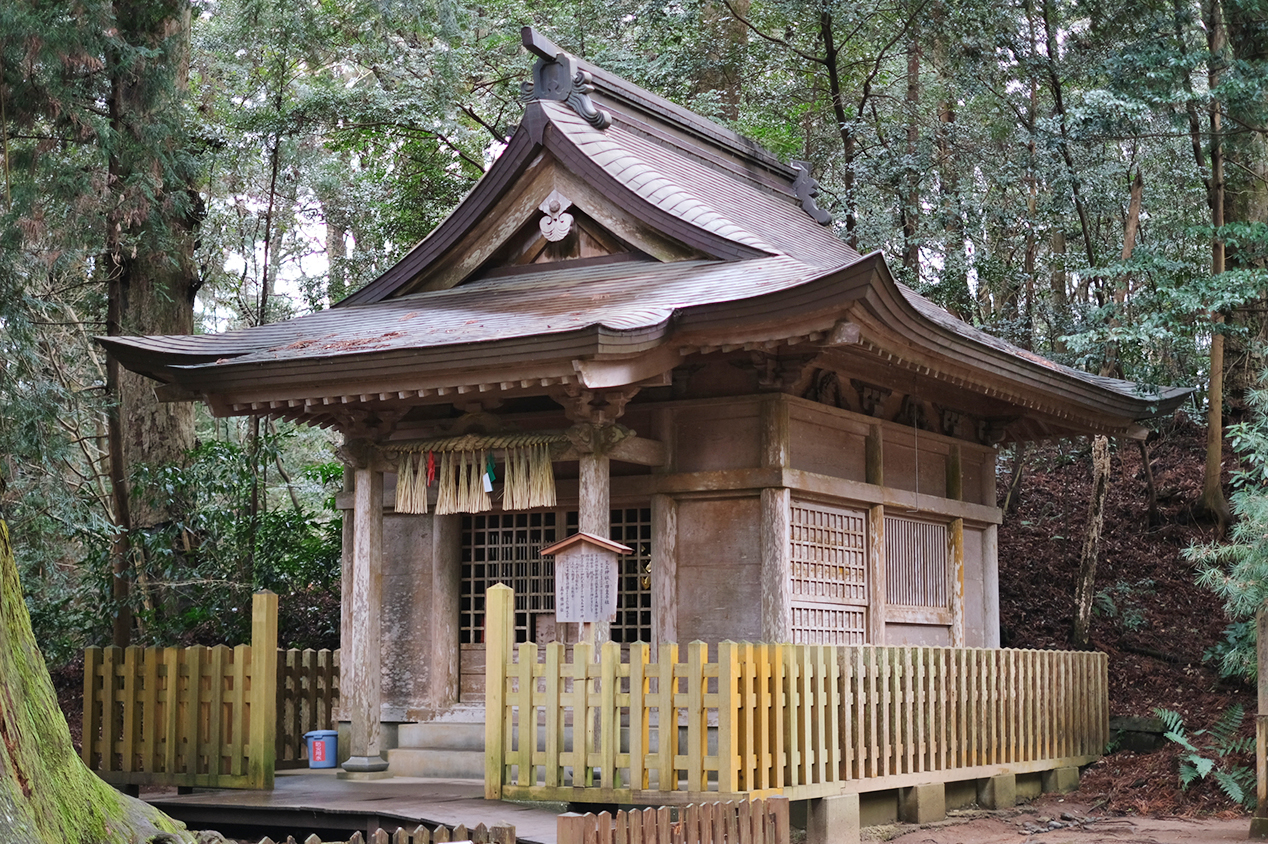 境内社の「荒立神社・四皇子社」。一般公開はされていませんが、「荒立神社」に祀られる木造神像も国指定重要文化財です。