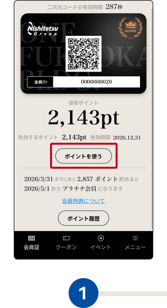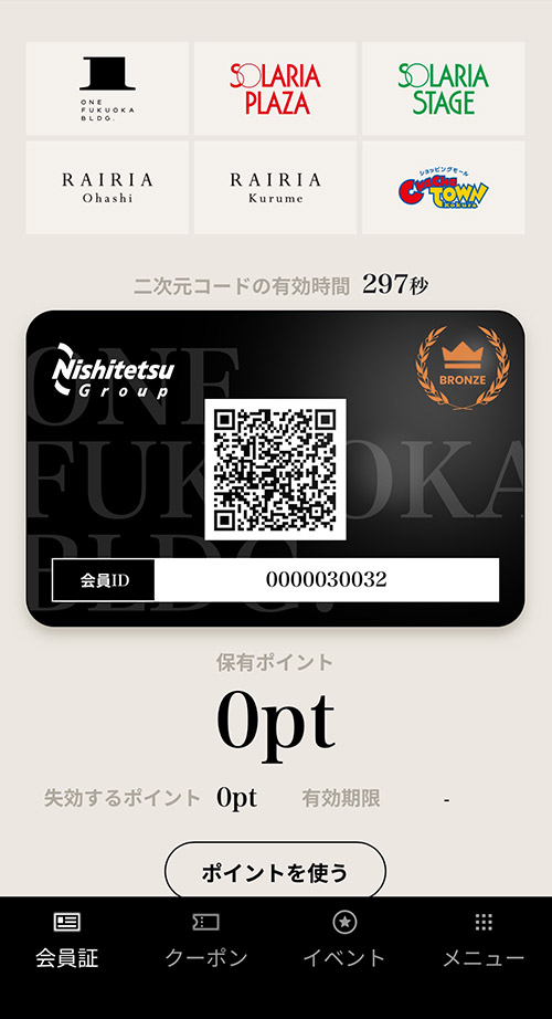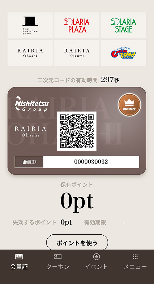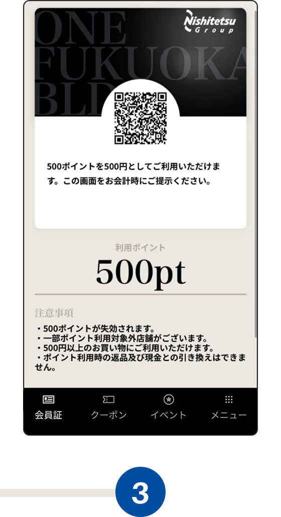 店舗スタッフへこちらの会員証画面をご提示ください。