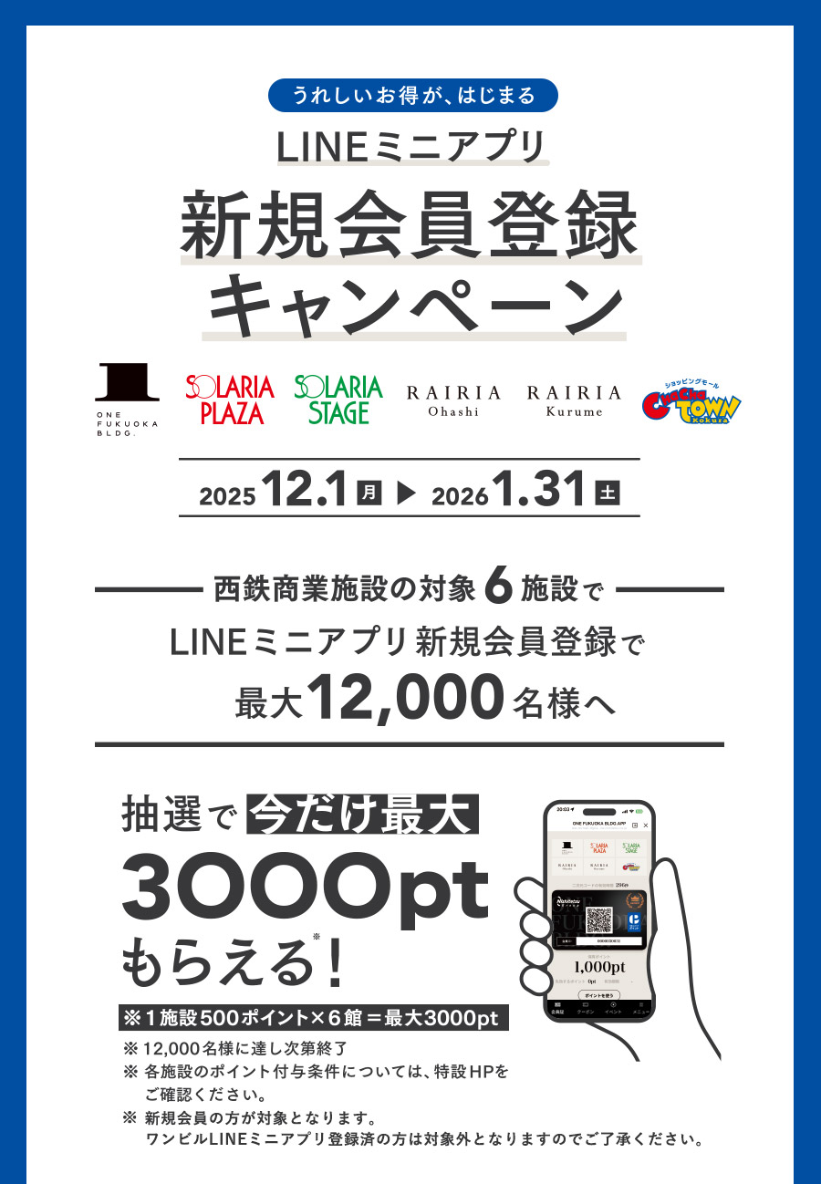 ※ソラリアプラザ、ソラリアステージ、レイリア大橋、レイリア久留米、チャチャタウン小倉は