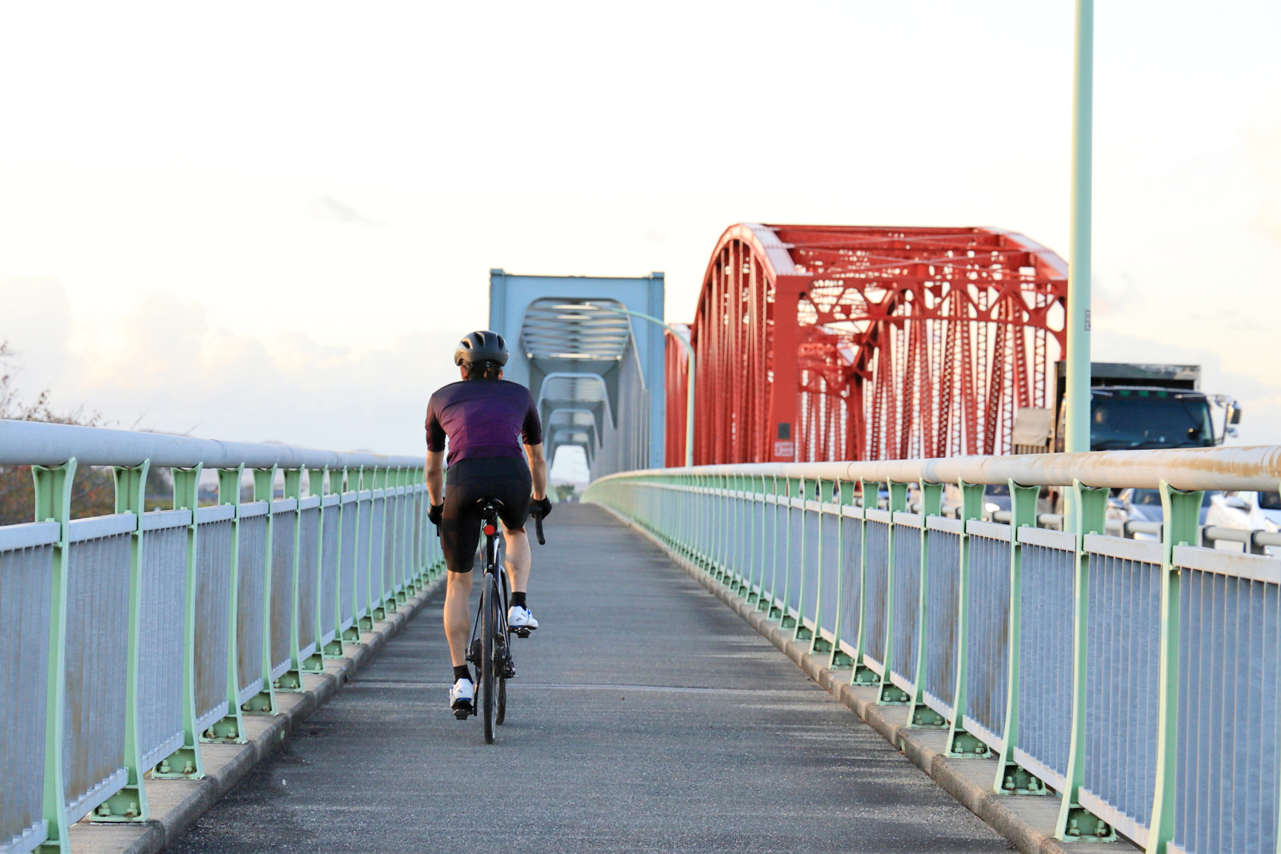 九州最大の河川である筑後川の河川敷をサイクリングしながら、山田堰を始めとした風景や夕日を眺めることができます。